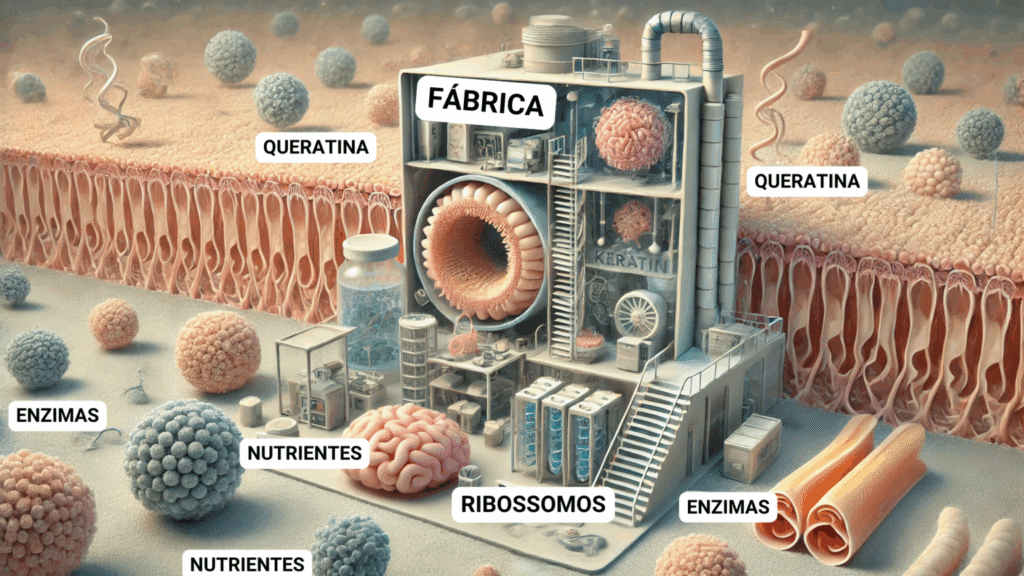 Estimula a produção de proteínas essenciais, como colágeno e queratina, deixando os cabelos mais fortes e resistentes.